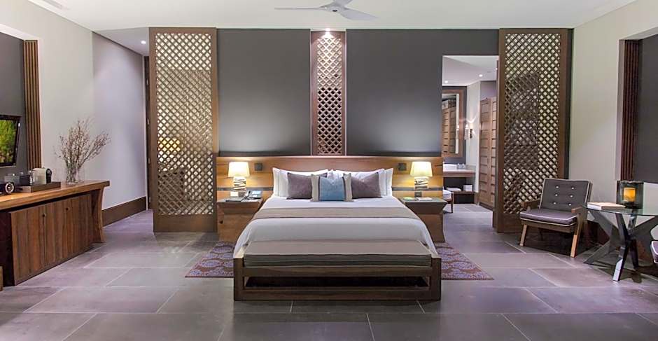 This suite is located a short distance from the beaches and the main pool area, this spacious villa features a bedroom suite set in a private tropical garden with an infinity pool and waterfall. This accommodations features a king size bed, a Nespresso coffee maker, a mini-bar and flat-screen TV. The spacious bathroom features a bath tub, an outdoor rainfall shower and amenities like bathrobes, slippers and free toiletries. Area: 2,430 sq. ft. / 740 ft². Up to three guests, ideal for families, please note that the rate is based on 2 adults (see Hotel Policies).